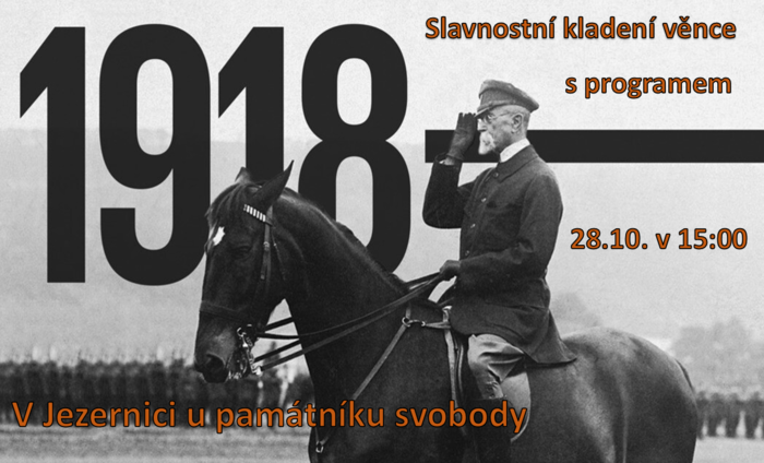 V sobotu 28. října 2023 v 15 hodin proběhne v Jezernici u památníku svobody slavnostní kladení věnce s programem. Všichni jste srdečně zváni.