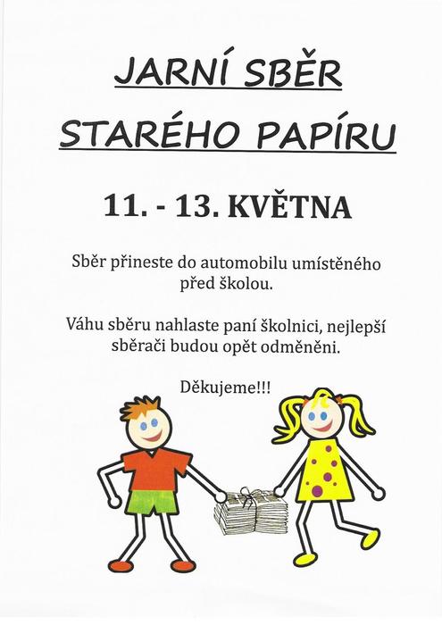 Základní škola a Mateřská škola Jezernice pořádá 11. -13. května jarní sběr starého papíru.