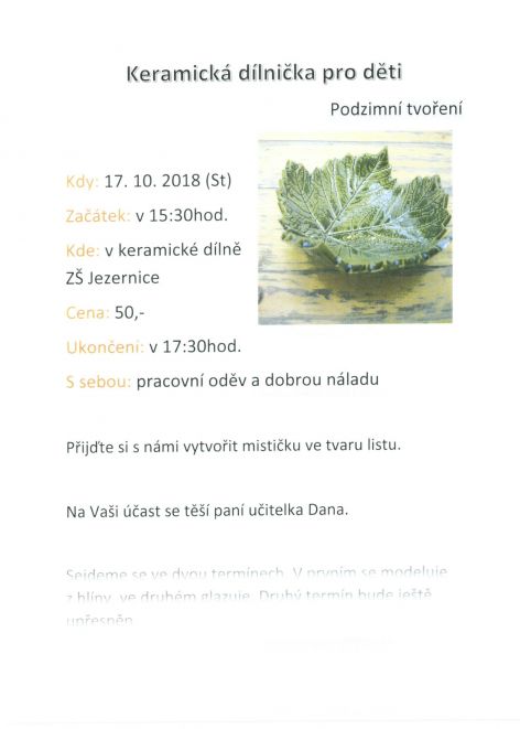 Úvod > Informace > Aktuality > Keramická dílnička pro děti 17.10.2018