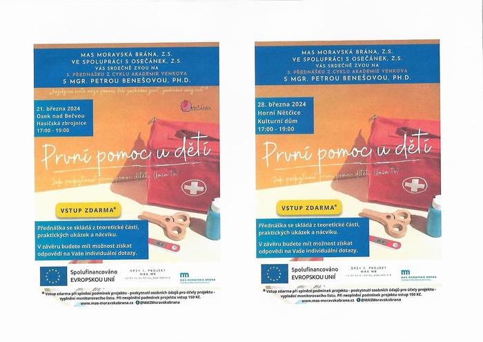 Přednáška První pomoc u dětí s lektorkou Mgr. Petrou Benešovou, Ph.D. se uskuteční ve 2 termínech a to: