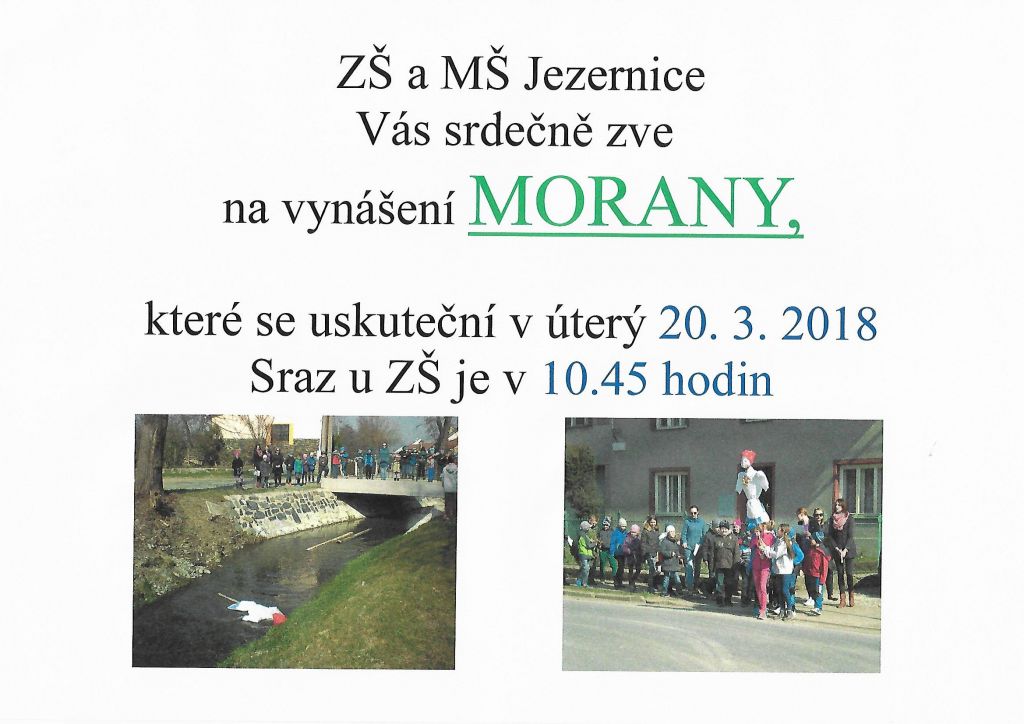 V úterý 20. 3. 2018, sraz u ZŠ je v 10.45 hodin. Srdečně zve ZŠ a MŠ Jezernice.