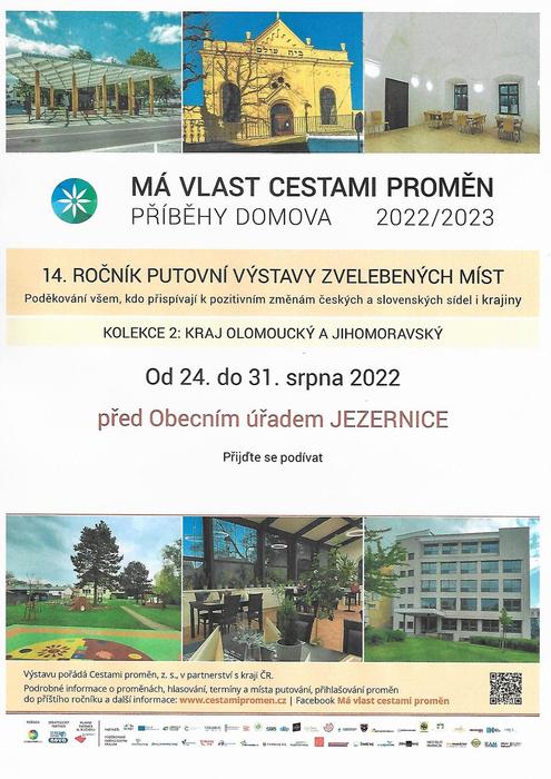 Zveme Vás na putovní venkovní výstavu zvelebených míst v Olomouckém a Jihomoravském kraji.