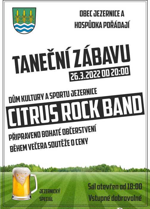 Obec Jezernice a Hospůdka Vás srdečně zvou na taneční zábavu v kulturáku v sobotu 26. března. Ve 21:00 vystoupí tanečníci Hollywood Stars Crew.