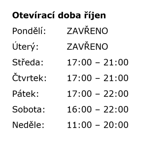Hospůdka v DKS zahajuje provoz ve čtvrtek 7. 10. 2021 v 17:00.