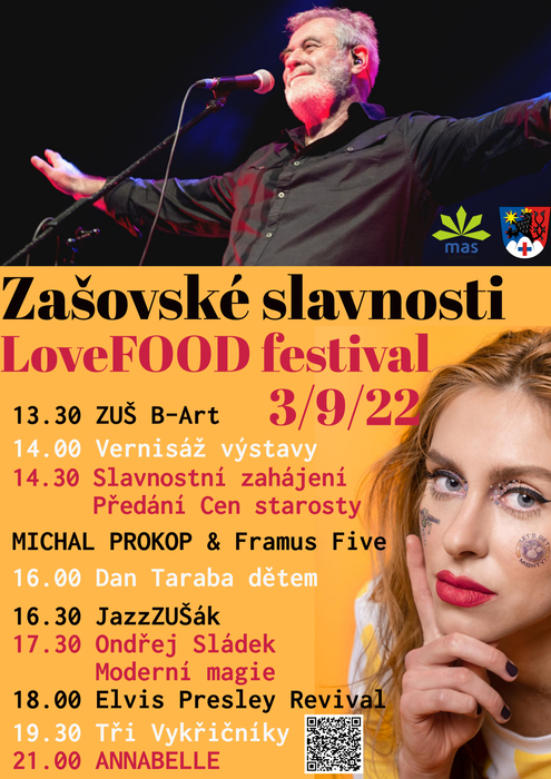 Michal Prokop s Framus Five, Annabelle - držitelka Ceny Anděl v kategorii Objev roku 2021, Elvis Presley Vládi Lichnovského, ostravská kapela Tři Vykřičníky budou hlavními hvězdami hudebního programu Zašovských slavností. Nebude chybět mistr ČR v moderní magii Ondřej Sládek. Přijďte si je v sobotu 3. září užít s přáteli či rodinou.